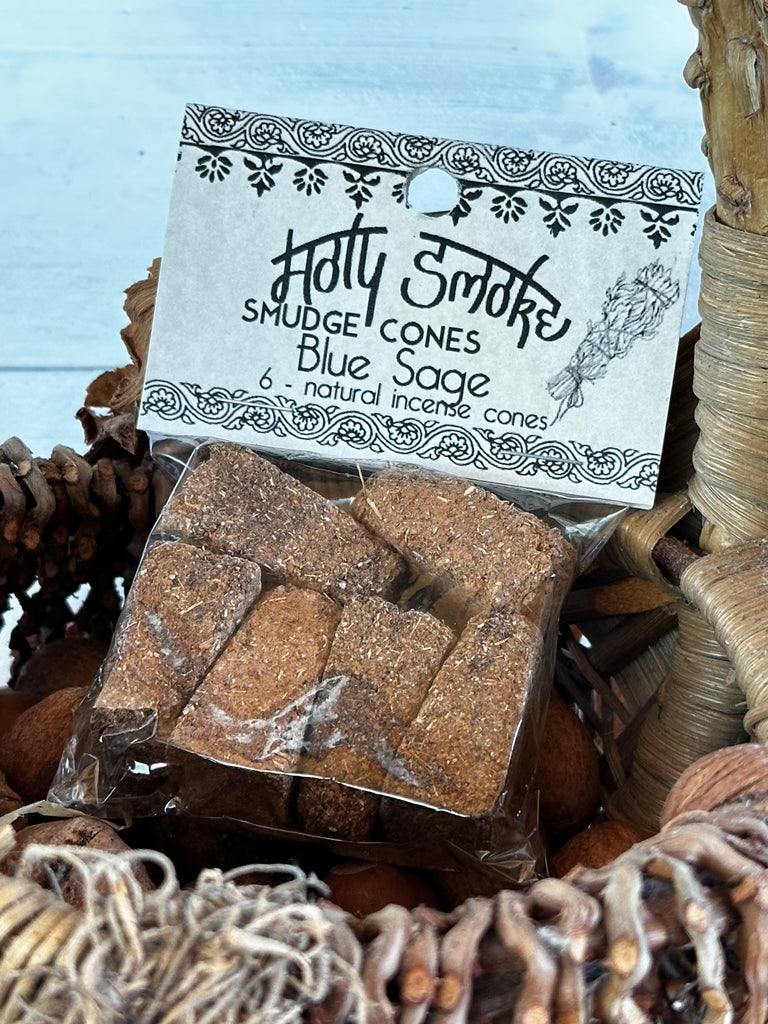 These all-natural incense smudge cones are made from pure, ground blue sage leaves combined with natural wood powder and gum resin.
