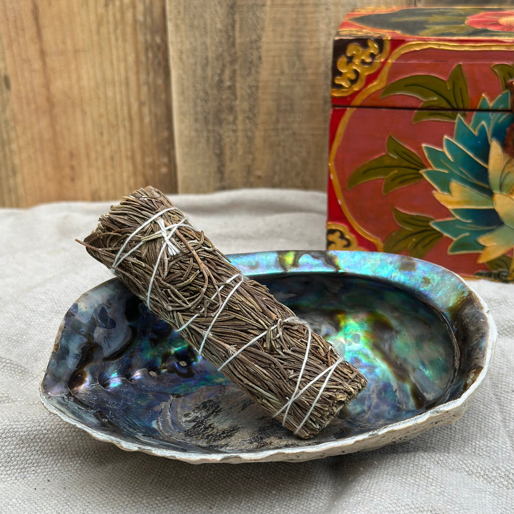 To use, light the tip of the smudge and let it burn for several moments. Extinguish the flame gently and wave the burning smudge stick back and forth, distributing the smoke throughout your space.